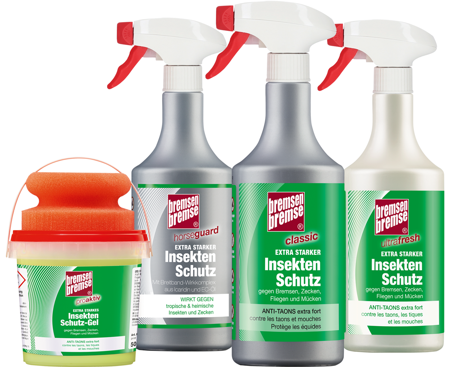 Die meisten Reiterinnen nennen Insektenschutzprodukte einfach Fliegensprays. Obwohl diese ja deutlich mehr abwehren als nur Fliegen, sondern natürlich auch Mücken, Bremsen, Zecken, Kriebelmücken, Lausfliegen… Offiziell heißen diese Produkte Repellents. (to repel = abschrecken/abwehren)