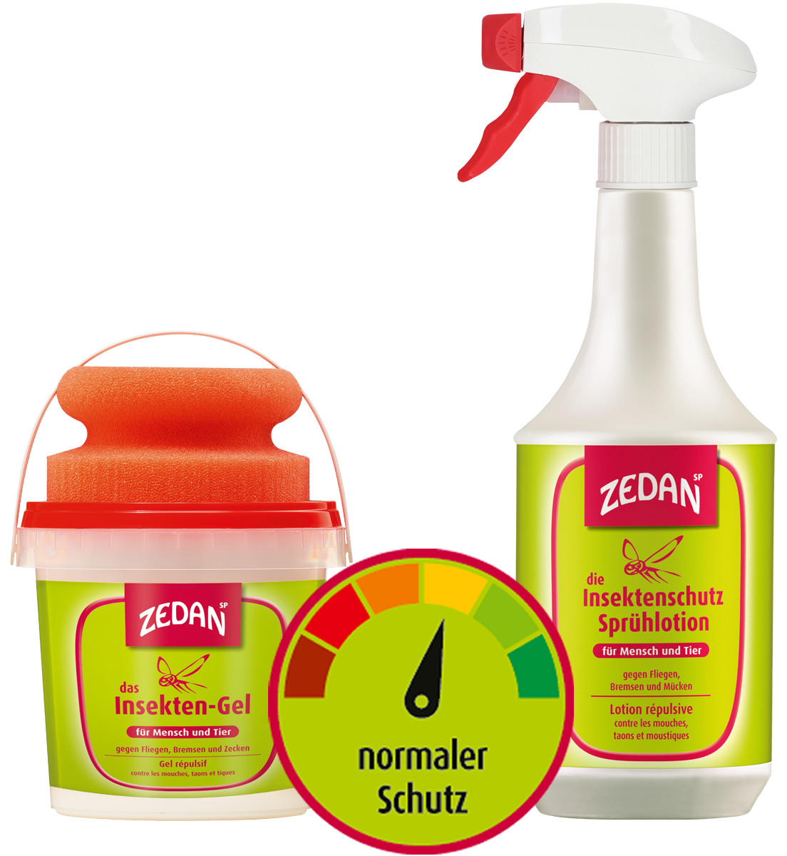 ZEDAN Insektenschutz schützt Dein Pferd auf pflanzlicher Basis mit Eukalyptus Citriodora Öl. BREMSENBREMSE arbeitet vorrangig mit den synthetischen Wirkstoffen Icaridin und IR3535 für besonders starken Schutz gegen Bremsen und Zecken.