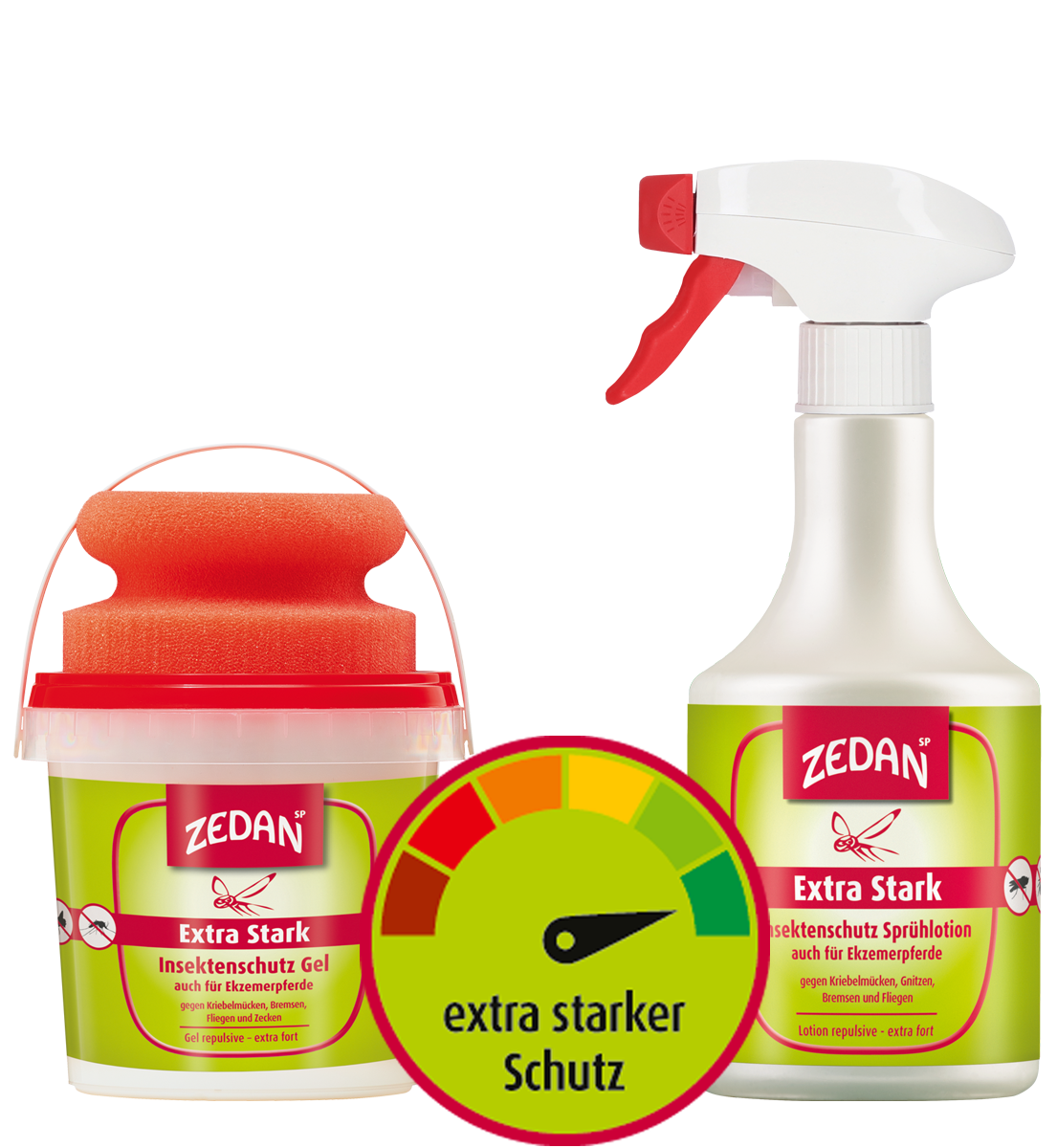 Das Produkt ZEDAN SP Extra Stark setzt dagegen nur auf einen Wirkstoff; und zwar ausschließlich auf EC-Öl aus Eukalyptus Citriodora. Dafür aber deutlich höher dosiert als das normale ZEDAN SP. Dieser ist besonders geeignet in der Abwehr von Kriebelmücken und Gnitzen und daher ist das unsere erste Empfehlung, wenn es um die Behandlung von Ekzemerpferde geht.