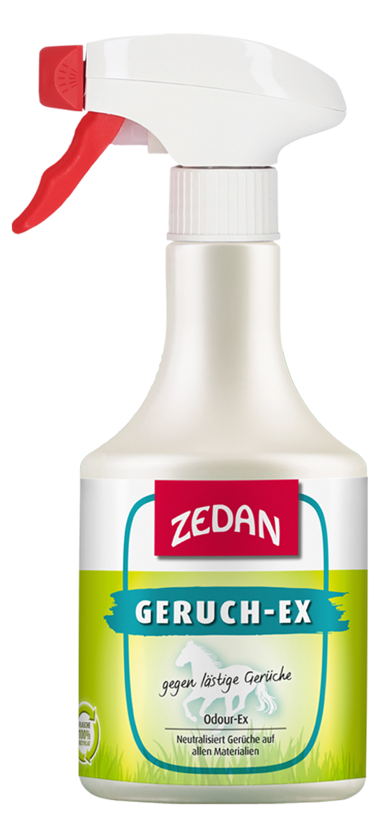 ZEDAN Geruch-Ex neutralisiert umweltfreundlich und langanhaltend unerwünschte Stallgerüche auf diversen Materialien wie Kleidung, Autobezügen, Schabracken, Stiefeln und weiteren Textilien. Auch Schweißgerüche auf Kleidung & Co. sowie Urin- und Haushaltsgerüche werden wirkungsvoll bekämpft.