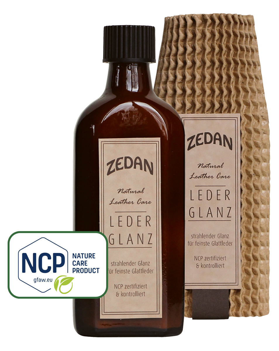 NCP zertifiziert und kontrolliert. ZEDAN Lederglanz ist eine besonders milde Pflege für feinste Lederprodukte wie Reitstiefel und Stiefeletten und sorgt für strahlenden Glanz.