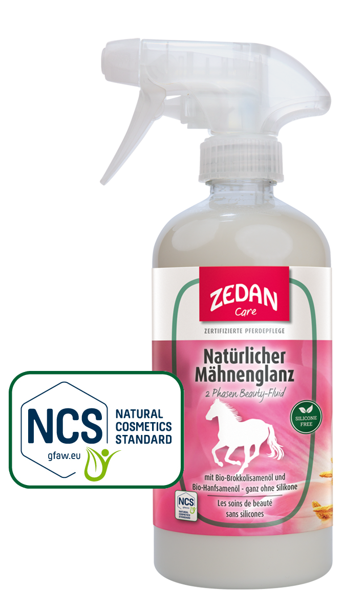 ZEDAN Natürlicher Mähnenglanz ist das 2-Phasen Beauty-Fluid für Glanz, Volumen, Griffigkeit und Kämmbarkeit mit dem natürlichen Silikonersatz Brokkolisamenöl in Bio Qualität. Es verbessert die Kämmbarkeit, beugt Haarschäden vor und verleiht seidigen Glanz. Bio Hanfsamenöl mit wertvollen Omega-3- und Omega-6-Fettsäuren pflegt Mähne und Schweif und unterstützt das gesunde Haarwachstum. Pflanzliches Betain macht das Haar leichter kämmbar, glänzend, verleiht ihm Volumen und verringert die elektrostatische Aufladung der Haare. ZEDAN Natürlicher Mähnenglanz ist auch als Einflechthilfe optimal einsetzbar.