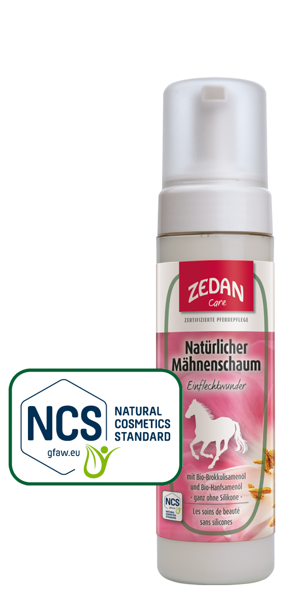 Bio Hanfsamenöl mit wertvollen Omega-3- und Omega-6-Fettsäuren pflegt Mähne und Schweif und unterstützt das gesunde Haarwachstum. Pflanzliches Betain macht das Haar leichter kämmbar, glänzend, verleiht ihm Volumen und verringert die elektrostatische Aufladung der Haare.