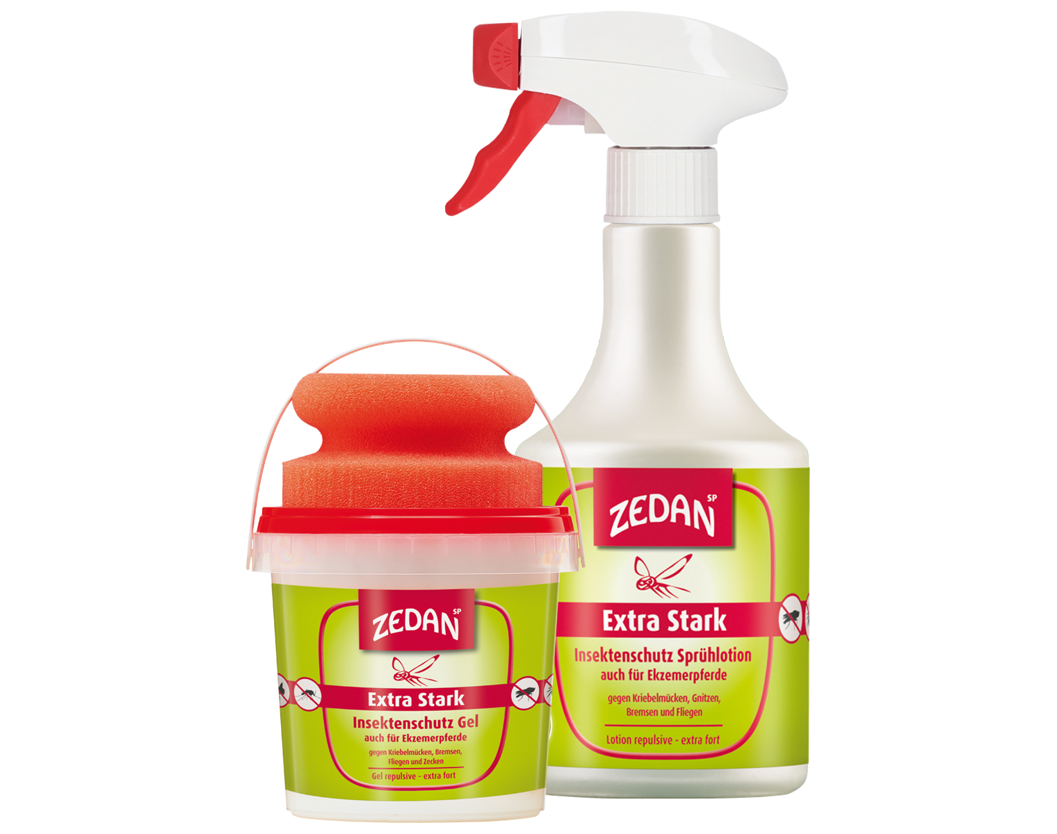 Eigentlich logisch: Insektenschutz. Neben Ekzemerdecken raten wir Dir zur Verwendung von unseren ZEDAN SP Extra Stark Produkten. Diese gibt es als Spray und Gel. Mit dem Gel kannst Du die meist punktuellen Bereiche sehr intensiv schützen. Das Spray kannst Du natürlich auch verwenden und Du hast direkt ein Produkt fürs ganze Pferd. Beide Produkte sind alkoholfrei und enthalten den Wirkstoff EC-Öl aus Eucalyptus Citriodora in einer extra hohen Konzentration. Es gibt also keinen „Brenn-Effekt“ auf der Haut, wie man es von alkoholhaltigen Sprays kennt.